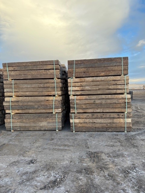 Budget-friendly #3 Grade 8′ railroad ties. Weathered reclaimed timbers with splits and wear—ideal for fencing, erosion control, and rustic landscaping